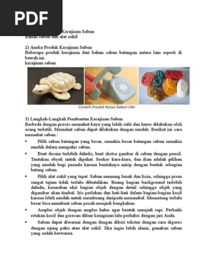Sketsa merupakan gambar yang dibuat oleh seseorang yang pada umumnya belum dijadikan sebagai hasil karya akhir. Gambar memotong sabun berdasarkan sketsa yang telah dibuat. 20 contoh kerajinan tangan dari sabun batang. Cara membuat kerajinan dengan sabun seperti di bawah ini: Dalam pengerjaannya, kerajinan dari sabun biasanya dengan cara dipahat.